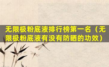 截至我所知的信息更新日期(2023年),并没有一个官方的“无限极粉底液排行榜”,因此无法确定“无限极粉底液”是否是排行榜的第一名。无限极(Infinitus)是中国的一个健康产品品牌,主要以中草药健康产品著称,而其化妆品产品线可能不如专业化妆品品牌那样广为人知。