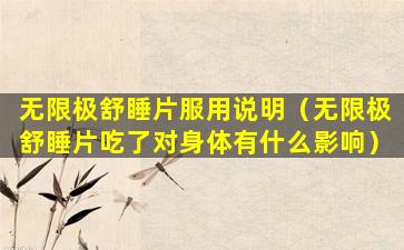 无限极(Infinitus)是一家中国的健康产品公司,提供多种健康食品和营养补充品。关于“无限极舒睡片”的服用说明,通常会在产品包装或官方说明书中提供。以下是一般性的服用建议,但请注意,具体产品的服用方法可能有所不同,因此以下信息仅供参考: