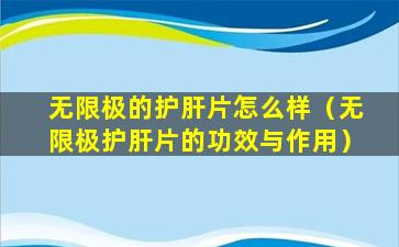 无限极是一家中国的保健品公司,其产品包括多种健康食品和营养补充品。关于“无限极护肝片”的功效与作用,我无法提供具体的信息,因为这需要基于该产品的成分、临床研究以及官方批准的说明书。