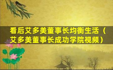 关于“艾多美董事长成功学院视频”的具体内容,我无法提供详细信息,因为这可能涉及到特定的商业产品或服务,而且我无法访问或验证互联网上的实时内容。如果您是在寻找关于成功学、领导力或企业管理的视频资源,我可以提供一些一般性的建议: