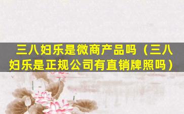 三八妇乐是中国的一个女性健康品牌,主要产品包括卫生巾、私护产品等。它并不是传统意义上的微商产品,但它的销售模式可能包含了微商的一些特点,比如通过社交网络和微信等平台进行推广和销售。