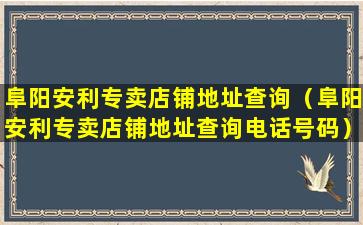 如果您需要查询阜阳地区的安利专卖店地址和电话号码,建议您采取以下几种方式: