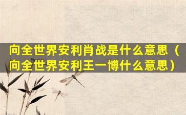 "向全世界安利肖战"这个表达中的“安利”是网络用语,源自英文单词“recommend”,意为推荐或介绍。在这个语境中,“向全世界安利肖战”意味着向全世界推荐或介绍肖战,表达了对肖战的喜爱和支持,希望更多的人了解和喜欢他。