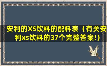 - 安利XS饮料是一种能量饮料,由安利公司生产,旨在提供能量和提神效果。