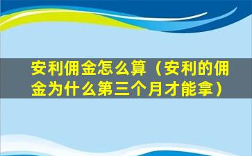 具体来说,安利的佣金可能需要等到第三个月才能拿到,这通常是因为: