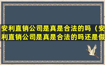 安利作为一家在全球多个国家和地区运营的公司,其在中国的业务是合法的,但前提是必须遵守中国的法律法规。消费者和潜在的直销员在参与之前应该仔细了解相关的法律法规,并确保所参与的活动是合法合规的。如果有疑问,可以咨询当地的工商管理部门或法律专业人士。
