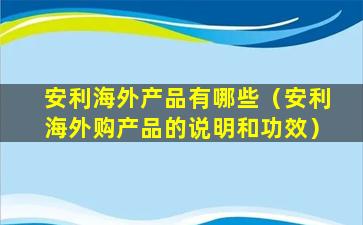 请注意,以上信息仅供参考,具体产品的说明和功效应以安利官方提供的信息为准。在购买和使用任何产品前,建议咨询专业医疗人员或遵循产品说明书上的指导。