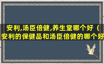 安利(Amway)、汤臣倍健和养生堂都是知名的健康产品品牌,它们各自有不同的产品线和市场定位。选择哪个品牌更好,取决于您的个人需求、偏好以及对产品的信任度。以下是这三个品牌的一些基本信息: