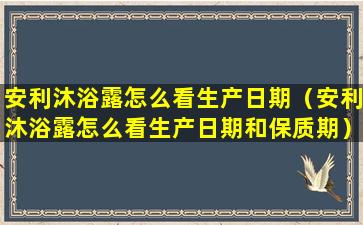 安利(Amway)是一家全球知名的直销公司,其产品包括个人护理、家居护理、营养补充品等。安利的沐浴露产品通常会在包装上标注生产日期和保质期。以下是一些通用的方法来查看安利沐浴露的生产日期和保质期: