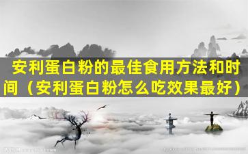 安利(Amway)的蛋白粉是一种常见的营养补充品,旨在帮助人们满足日常蛋白质需求。以下是一些关于安利蛋白粉的最佳食用方法和时间的建议: