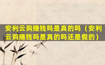 关于“安利云购赚钱吗”的问题,这取决于多个因素: