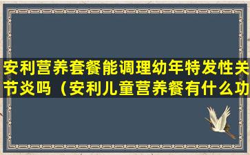安利营养套餐或其他任何营养补充品都不能单独用于调理幼年特发性关节炎。正确的做法是遵循医生的治疗计划,并在必要时考虑营养补充作为辅助措施。