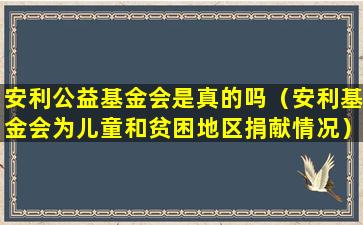 安利公益基金会(Amway Charity Foundation)是由安利(中国)日用品有限公司发起成立的非公募基金会,旨在支持中国的儿童健康和教育项目。截至我知识更新的时间点(2023年),安利公益基金会已经在全国范围内开展了多个公益项目,包括但不限于“春苗营养计划”、“阳光操场”、“安利儿童营养改善计划”等,旨在改善贫困地区儿童的营养状况和教育环境。