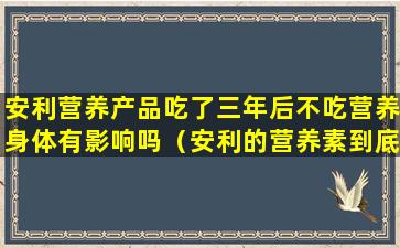 安利(Amway)是一家全球性的直销公司,提供多种营养补充产品。如果你之前一直在使用安利或其他品牌的营养补充品,并且突然停止使用,是否会对身体产生影响取决于多种因素,包括: