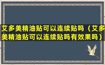 如果你已经使用了艾多美精油贴,并且想要了解是否可以连续使用,最准确的做法是查看产品包装上的说明或联系生产厂家获取指导。如果产品说明中没有明确指出,或者你对自己的使用情况有疑问,建议咨询医生或药师的意见。