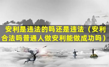 因此,不能一概而论地说安利是违法的或违法犯罪的,这取决于其具体的行为是否符合当地的法律法规。如果有关于安利违法的具体指控或案件,需要根据具体情况和法律判决来判断。