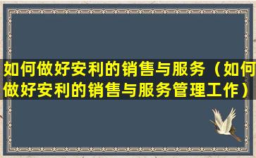 要做好安利的销售与服务管理工作,可以遵循以下几个步骤: