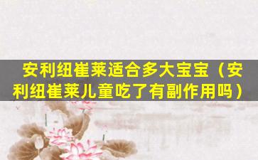 安利纽崔莱(Amway Nutrilite)是一个知名的营养补充品品牌,它提供多种维生素、矿物质和其他营养补充产品。关于“适合多大宝宝”的问题,需要根据具体的产品来判断。