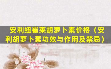 关于安利纽崔莱胡萝卜素的价格,这可能会因地区、销售渠道、促销活动以及产品规格(如含量、包装大小等)而有所不同。通常,安利的产品可以通过其官方网站、授权经销商或直销代表购买。