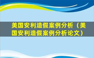 关于“美国安利造假案例分析论文”,首先需要明确的是,安利(Amway)是一家全球知名的直销公司,其业务模式和产品在全球范围内都有广泛的影响。关于安利是否存在造假行为,需要基于事实和证据进行分析。
