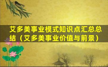 艾多美(Amway)是一家全球知名的直销公司,其事业模式主要基于多层次营销(MLM)或网络营销。以下是艾多美事业模式的一些关键知识点汇总: