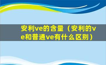 安利(Amway)是一家全球知名的直销公司,其产品线涵盖了营养补充品、个人护理品、家居清洁用品等多个领域。在营养补充品中,维生素E(Vitamin E,简称VE)是一种常见的成分。