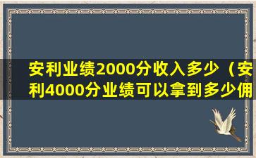 关于“2000分收入多少”,这个问题的答案并不是固定的,因为安利的奖金制度相对复杂,涉及到多个层级和奖励机制。一般来说,安利的奖金包括但不限于以下几种: