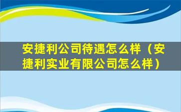 如果您想了解安捷利公司的具体待遇情况,建议您可以通过以下几种方式获取信息: