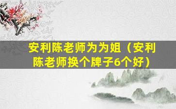 您提到的“安利陈老师换个牌子6个好”这句话似乎是一句网络用语,但具体含义不太明确。如果您是在询问关于某个品牌或产品的推荐,或者是在讨论某个特定的话题,请提供更多的上下文信息,以便我能够给出更准确的回答。