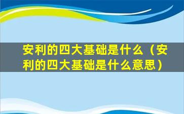 这四个基础共同构成了安利业务的核心,帮助公司在全球范围内建立了庞大的销售网络和品牌影响力。