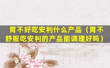 安利(Amway)是一家全球性的直销公司,提供多种健康、美容和家居产品。关于安利产品是否能调理胃部不适,这取决于胃部不适的具体原因和安利产品的成分。