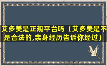 为了确认艾多美是否是正规平台,建议您进行以下步骤: