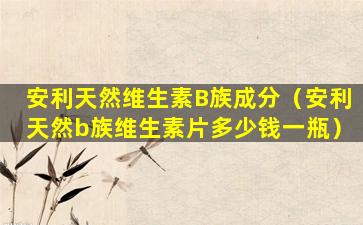 安利(Amway)是一家全球性的直销公司,其产品线涵盖了营养补充品、个人护理品、家居清洁产品等多个领域。在营养补充品中,安利提供了多种维生素和矿物质补充剂,其中包括天然维生素B族成分的产品。