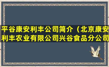 截至我所知的信息,平谷康安利丰公司可能是一家位于中国北京市平谷区的企业。由于“平谷康安利丰公司”并不是一个广为人知的大型企业,且没有具体的信息来源,我无法提供该公司的详细介绍。