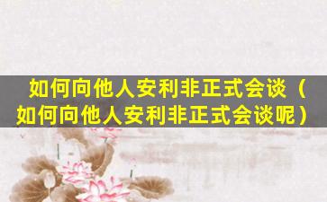 安利(Amway)是一家全球知名的直销公司,主要销售健康、美容、家居护理等产品。如果你想向他人推荐非正式会谈中的安利产品,可以采取以下几个步骤: