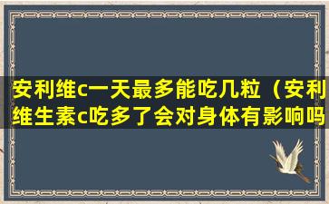 如果你想知道安利的维生素C产品一天最多可以吃几颗,你应该查看产品包装上的说明或者咨询医生或营养师。过量摄入维生素C可能会导致胃肠道不适、腹泻等副作用,因此请严格按照推荐剂量服用。如果有任何疑问,建议咨询专业医疗人员。