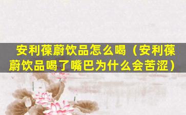 安利葆蔚饮品是一种营养补充饮品,通常含有多种维生素、矿物质和其他营养成分。如果您在饮用后感到嘴巴苦涩,可能有以下几个原因: