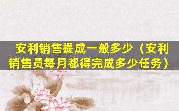 安利(Amway)是一家全球性的直销公司,其销售模式依赖于独立销售代表(通常称为IBO,即Independent Business Owners)来推广和销售产品。关于销售任务,安利的政策可能因地区和时间而异,但通常情况下,安利的销售代表并没有强制性的月度销售任务。