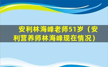 截至我知识更新的时间点(2023年),关于“安利营养师林海峰”的具体情况并没有公开的详细信息。林海峰可能是安利公司的一位营养师,但如果没有更多的上下文或具体事件,很难提供关于他的最新情况。