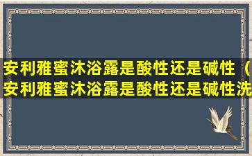由于安利雅蜜沐浴露并非洗发水,因此它不是用来清洁头发的。如果您需要了解特定洗发水的酸碱性,您应该查看该洗发水的具体产品信息或成分列表。通常,产品包装上会标明其pH值或是否为酸性或碱性。如果您对某个产品的酸碱性有疑问,建议直接咨询生产商或查看产品说明书。