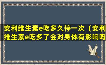 关于“安利维生素E吃多久停一次”的问题,没有固定的答案,应根据个人的健康状况和医生的建议来决定。如果你正在服用安利维生素E或其他任何营养补充品,请确保遵循产品说明和医疗专业人士的指导。