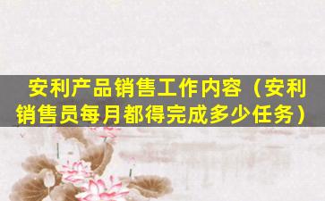 安利(Amway)是一家全球性的直销公司,其产品涵盖营养补充品、个人护理品、家居清洁用品等多个领域。安利产品的销售工作内容通常包括以下几个方面: