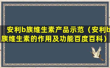 安利(Amway)是一家全球知名的直销公司,其产品线包括营养补充品、个人护理品、家居清洁用品等。B族维生素是一组水溶性维生素,包括维生素B1(硫胺素)、维生素B2(核黄素)、维生素B3(烟酸/尼克酸)、维生素B5(泛酸)、维生素B6(吡哆醇)、维生素B7(生物素)、维生素B9(叶酸)和维生素B12(钴胺素)。