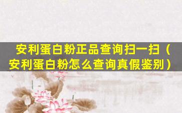 如果您想要查询安利蛋白粉是否为正品,可以按照以下步骤操作: