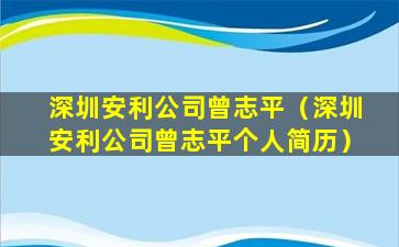 关于“曾志平”这个名字,由于信息量较少,我无法提供具体的个人背景或与深圳安利公司的具体关联。如果曾志平是深圳安利公司的员工、经销商或与该公司有其他业务往来,可能需要更多的上下文信息来确认其身份和角色。
