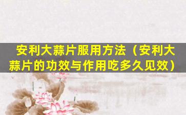 关于安利大蒜片的服用方法,通常会在产品包装或说明书上提供具体的指导。以下是一般性的服用建议,但请注意,具体服用方法应遵循产品说明或咨询医生或营养师的建议: