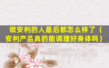关于“做安利的人最后都怎么样了”,这个问题的答案因人而异,因为每个人的经历、努力程度、销售技巧、人际关系网络以及对业务的承诺都不同。以下是一些可能的情况: