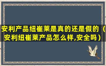 安利纽崔莱的产品在市场上被广泛认为是安全的,但使用任何营养补充品时都应该谨慎,并根据个人情况做出决定。