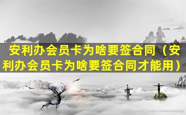 安利(Amway)是一家全球知名的直销公司,其业务模式涉及个人销售和团队建设。在办理安利会员卡时,通常需要签订合同,这主要是因为以下几个原因: