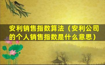 安利(Amway)是一家全球性的直销公司,其销售指数算法并不是公开的信息,因此无法提供具体的算法细节。通常,直销公司的销售指数或业绩计算会涉及到以下几个方面: